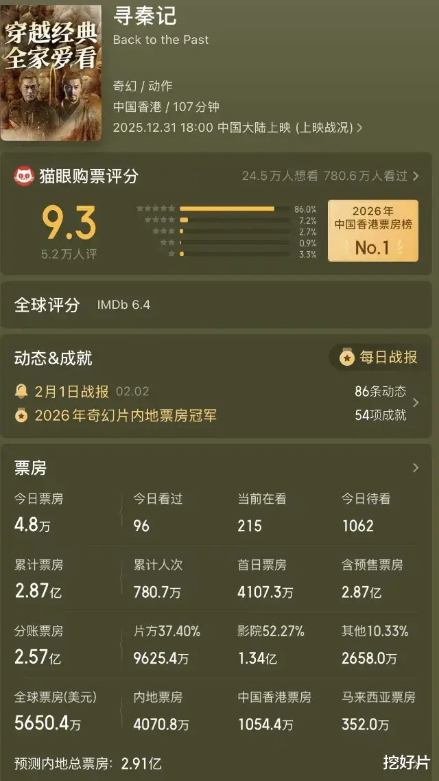 而《寻秦记》《匿杀》等作品的票房能相对好一点,评分虽然不如《用武之地》,但牢牢把控着首日的排片和热度,前几天就收的差不多了,后面当然是能收多少是多少了。