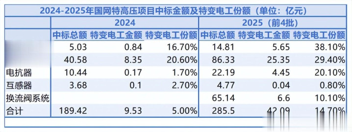 2025年国网前四批特高压项目中标总金额为285.5亿元,其中交流变压器和直流变压器合计中标金额为101.14亿元,占比达到35%。这一数据充分显示了变压器在特高压项目中的重要地位以及市场需求的旺盛程度。