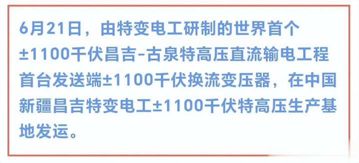 在特高压领域,特变电工具有显著的技术领先优势。早在2015年,特变电工就高瞻远瞩地投资建设了新疆±1100kV变压器研发制造基地。这一基地的建设,为特变电工在特高压变压器领域的研发和生产奠定了坚实基础。