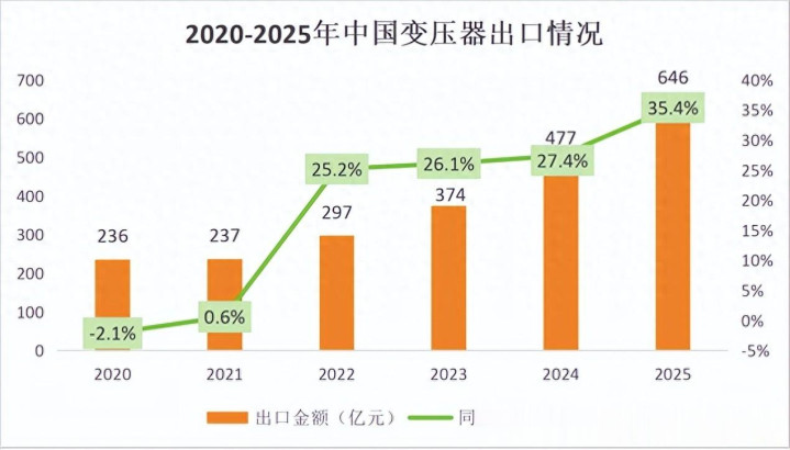 以2025年为例,我国变压器出口总值达到了惊人的646亿元,与2024年相比,增长幅度近36%。这一数据直观地反映了我国变压器在国际市场上的强劲竞争力以及全球市场对我国变压器产品的旺盛需求。